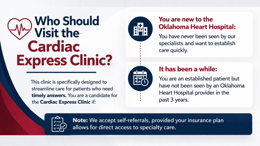 By Phone: Call us directly at (405) 608-3800 to request a “Cardiac Express” appointment